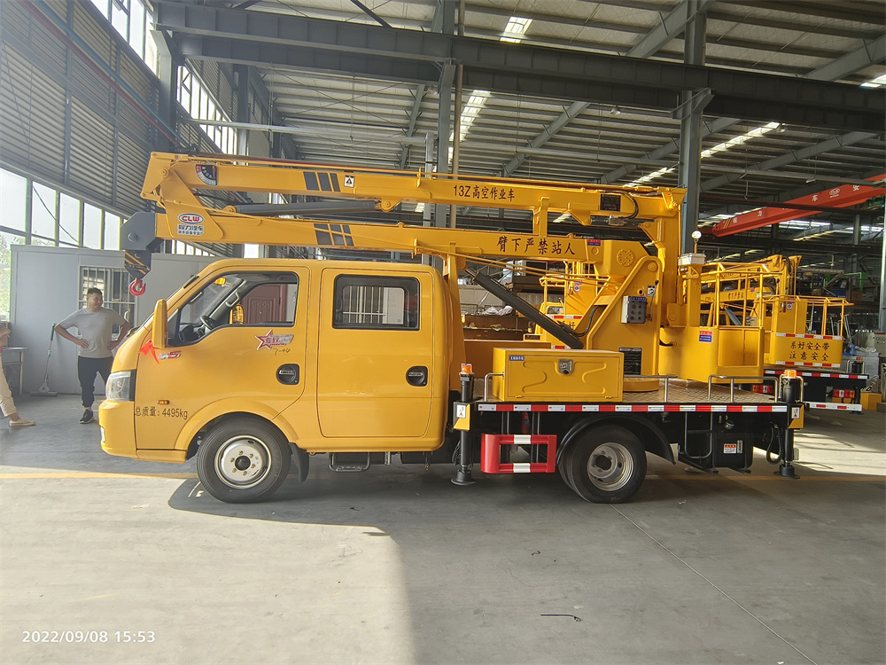 專用性能: 液壓 360 度全回轉,三節折疊臂,單液壓舉升缸,帶雙向平衡閥,帶電控 操作舉升臂, 四支液壓油缸可調式支腿帶雙向液壓鎖(支腿操作為手動操作, 可單獨控制),上下二套操作臺,帶 1 噸吊鉤,最大作業高度 13 米,最大作業 半徑 5.6 米,最大起吊重量 1 噸。 設備結構緊湊,堅固耐用,操作方便可靠。獨特的全回轉三節臂液壓 操控系統設計使工作人員操作更平穩,能更安全的將工作人員送到作業位 置,進行維修,安裝,清洗,攝影,造船, 化工,電力搶修,剪枝,更換路燈及其 他工程高空作業搶修!