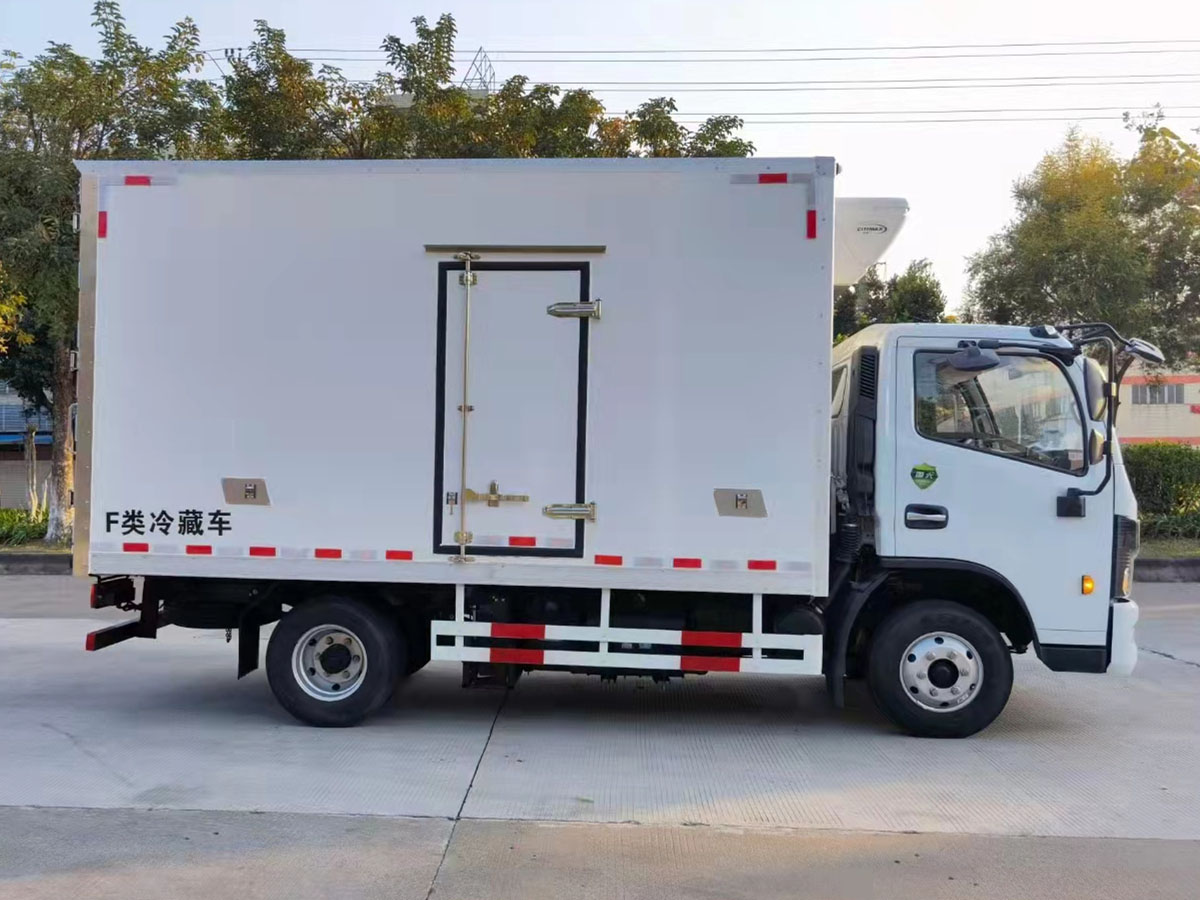 (2)廂板材質:內外壁板選用國內優質玻璃鋼(不吸光、隔熱性好、硬度強、抗氧化);中間保溫層為XPS擠塑聚笨板;廂體厚度8CM。地板采用鋁花紋板,門邊條采用迷宮式橡膠密封條。