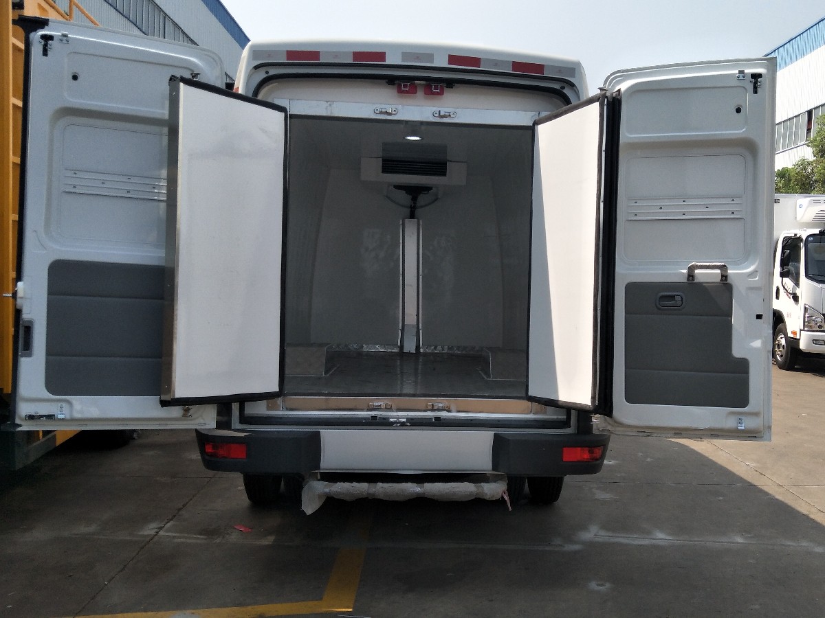 (2)廂板材質(zhì):內(nèi)外壁板選用國內(nèi)優(yōu)質(zhì)玻璃鋼(不吸光、隔熱性好、硬度強(qiáng)、抗氧化);中間保溫層為XPS擠塑聚笨板;廂體厚度8CM。地板采用鋁花紋板,門邊條采用迷宮式橡膠密封條。