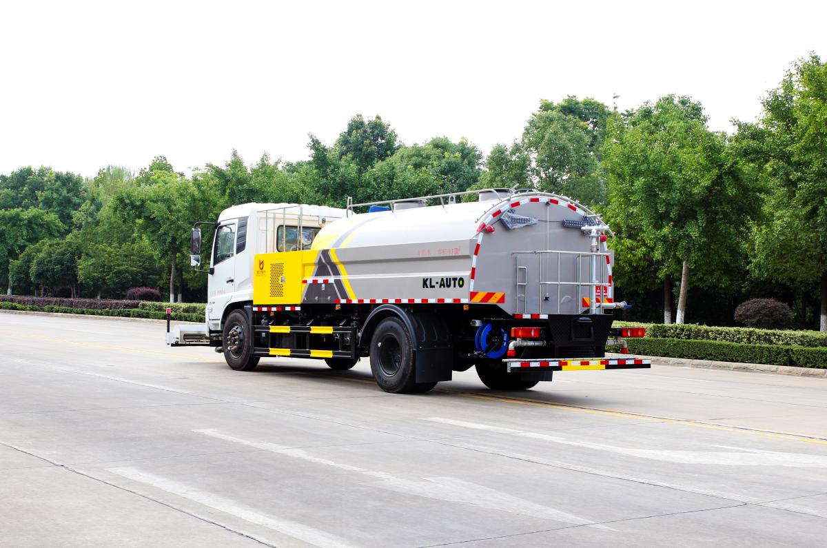 東風天錦道路洗掃車具有路面灑水、沖洗、掃路、清洗、降塵等多種功能。同時配有高壓水槍可 對道路衛(wèi)生死角、牛皮癬及車輛自身進行清潔作業(yè)。